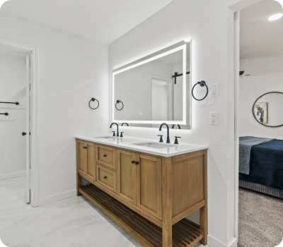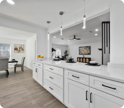 A complete living room upgrade featuring new flooring, modern lighting, and clean finishes that bring comfort and elegance.